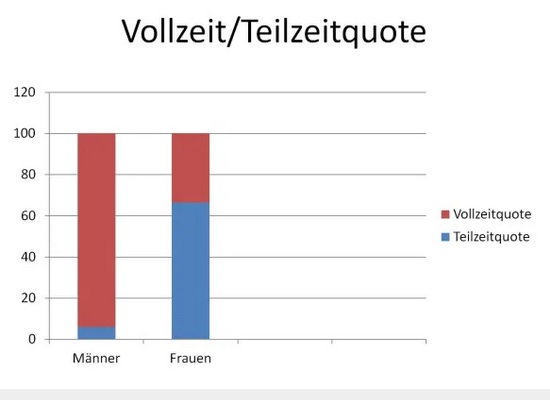 Der Mann geht arbeiten und verdient das Geld. Die Frau bleibt zu Hause und kümmert sich um die Kinder. Vielleicht arbeitet sie in Teilzeit, um noch ein bisschen was dazu zu verdienen. Das war es dann aber auch schon. Heutzutage doch nicht mehr, oder? Doch, auch heutzutage noch. Ein Blick in die Statistik genügt: Zwischen Frauen und Männern bleibt die Rollenverteilung traditionell, sobald sie ein Kind oder mehrere Kinder haben. Während gerade einmal 6% der Männer in Teilzeit gehen, sind es bei den Frauen knapp 70%. Geschlechtergerechtigkeit sieht anders aus.